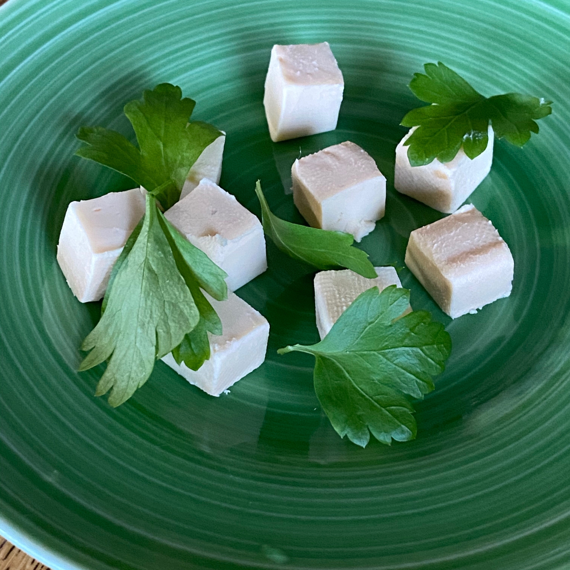 切人 2種類のチーズの味噌漬けですが こうなりました 奥の四角いのがクリームチーズ 手前でマカダミアナッツみたいになってるのがモッツァレラチーズ